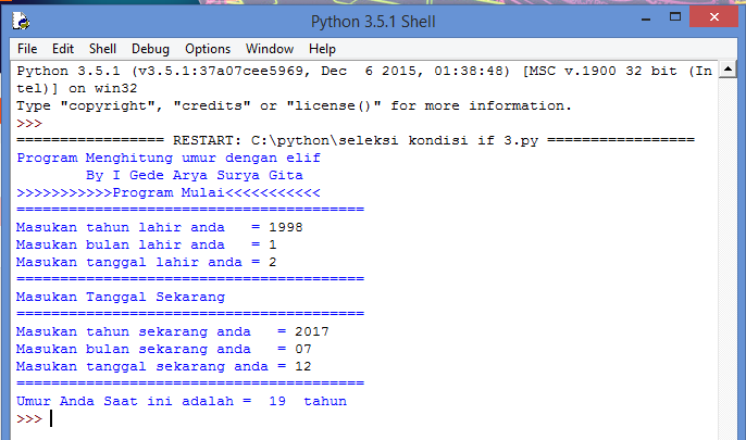 Anda bisa memberikan komentar kritik dan saran di bawah artikel atau bisa juga dengan mengirimkan email ke helloatpythonindodotcom. Di halaman ini tersedia banyak contoh program sederhana yang bisa anda coba sendiri. Jika anda hendak melihat beberapa contoh bahasa pemrogaman yang lain simak contoh program pascal yang kami terbitkan sebelumnya di situs ini. Beberapa contoh yang akan saya berikan merupakan program program yang sederhana dengan nama nama variabel yang saya buat dengan nama yang akrab kita gunakan juga. Sebelum itu apa sih python. Contoh tampilan gui window yang muncul.