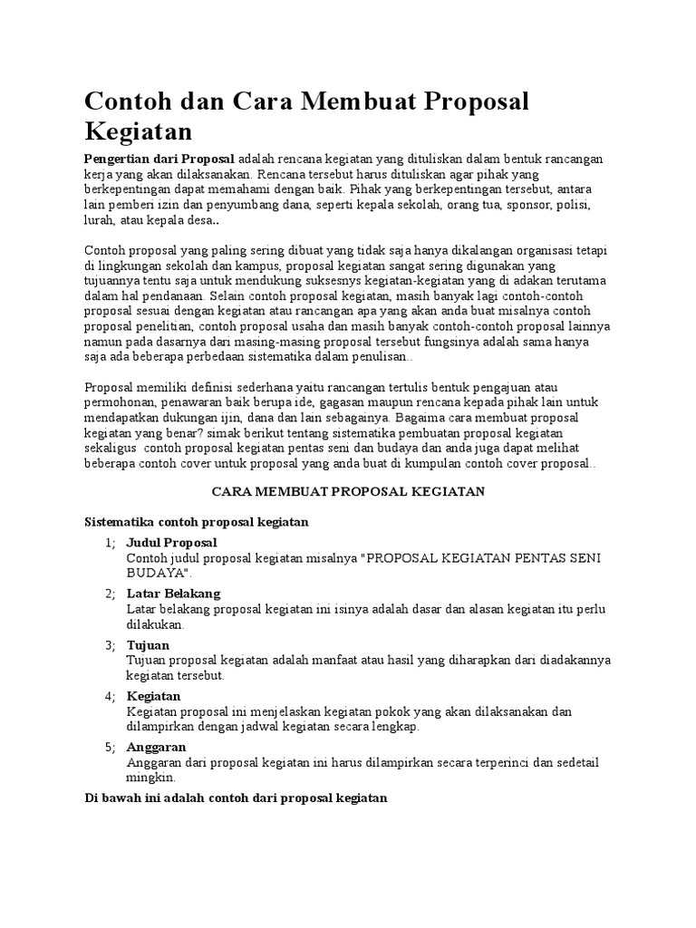 Proposal kegiatan festival pentas seni dan budaya. Contoh proposal yang paling sering dibuat tidak hanya dalam kalangan organisasi tetapi dilingkungan sekolah juga sering membuat proposal untuk kegiatan dalam lingkup sekolah seperti proposal kegiatan pentas seni pensi.