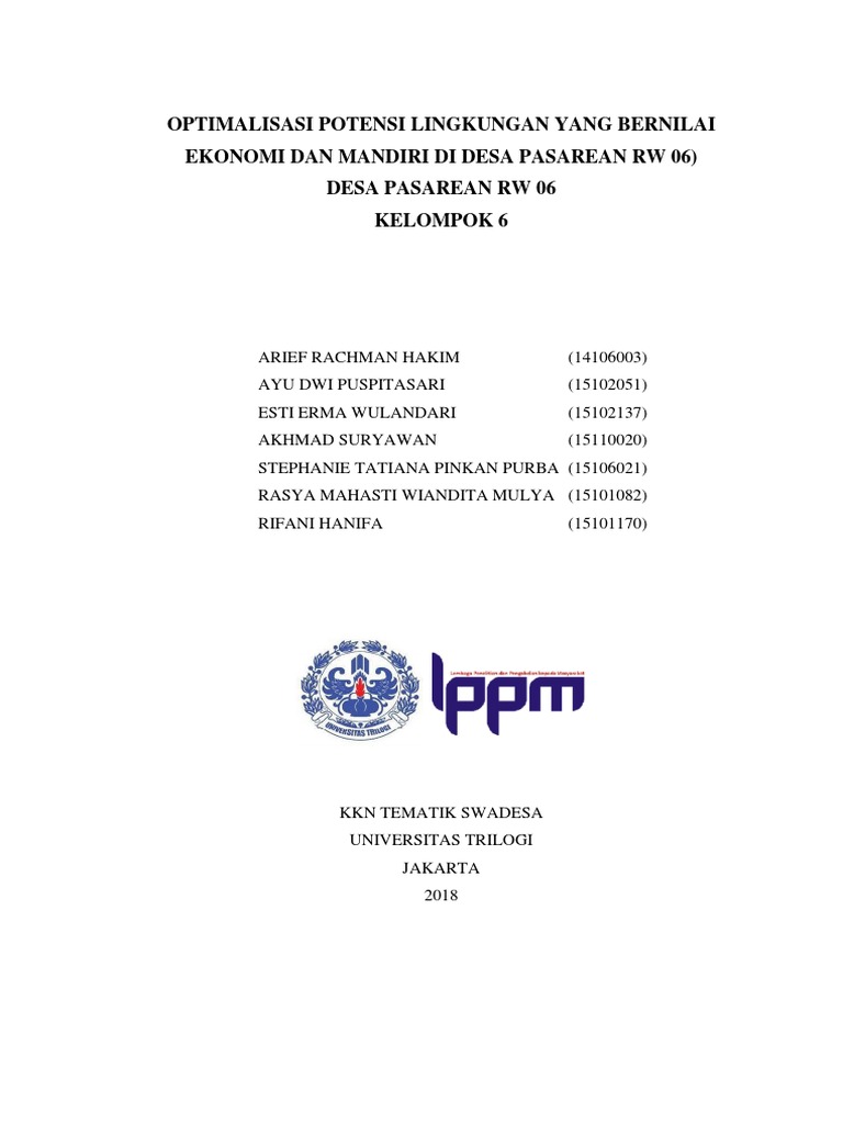 Sebelum melakukan pengamatan dan pencarian data langsung di lapangan dilakukan pembagian tugas observasi berdasarkan bidangnya masing masinghal ini dilakukan mengingat program kerja yang akan dilaksanakan di pura mengening harus sesuai dengan masalah dan kebutuhan yang ada di pura mengening dan di wilayah banjar dinas saraseda sedangkan waktu observasi yang telah ditentukan tidak cukup panjang. Latar belakang kuliah kerja nyata kkn merupakan mata kuliah intra kurikuler yang diselenggarakan oleh akademik di seluruh perguruan tinggi yang wajib diikuti oleh seluruh mahasiswa dengan tujuan meningkatan kemampuan dan wawasan mahasiswa sebagai bekal hidup di masyarakat setelah lulus studi. 11 latar belakang masalah. Maka selaku mahasiswa peserta kkn tematik hendaknya selalu berusaha untuk ikut terjun secara langsung melihat dan mencari permasalahan yang timbul dikalangan pengusaha sehingga mendapatkan rencana. Lembaga pengabdian kepada masyarakat pati melalui pusat kkn memberikan kepada mahasiswa program kkn tematik. Contoh proposal kkn tematik lengkap dengan file dokumen doc.
