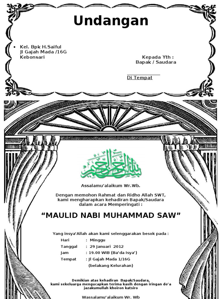 Contoh proposal maulid nabi doc. Masjid al ikhlas seuat jaya. Contoh proposal kegiatan peringatan maulid nabi muhammad saw kali ini saya bagikan contoh proposal kegiatan peringatan maulid nabi muhammad saw yang dibutuhkan oleh panitia kegiatan untuk mencari dana biasanya dibuat oleh dkm karang taruna majlis talim pondok pesantren atau sekolah juga biasanya membuat proposal ini. Maulid nabi muhammad saw merupakan salah satu peringatan hari besar islam yang rutin di laksanakan setiap bulan rabiul awal bulan hijriyah. Kabupaten serang tahun 2016. Peringatan hari besar islam phbi maulid nabi muhammad saw 1438 h ikatan remaja masjid seuat irmas seuat jaya petir. Contoh proposal desa harjawana 1150 pm proposal edit proposal peringatan hari besar islam phbi maulid.