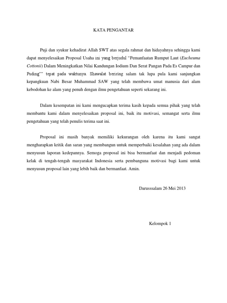 Nama usaha yang akan kami buat sangat diperlukan karena agar mudah diingat oleh setiap konsumen yang membeli produk kitauntuk usaha ini kami memberikan nama nurii puding yang kami ambil dari singkatan nama tim pelaku bisnis kami. Angkat dan tiriskan pisang kemudian masukan ke dalam mika dan taburi dengan meces coklat. Puji syukur kehadirat allah swt yang telah melimpahkan taufik serta hidayah nya sehingga kami dapat menulis proposal yang berjudul puding strawberry bagi masyarakat. Usaha ini kamiberi nama sweet puding manino pudding coklat manis sesuai dengan potensi peluang usaha yang ada hargapun kami sesuaikan dengan kantong ekonomis warga sekolah. Kumpulan contoh proposal kegiatan usaha wirausaha pengajuan dana pendidikan permohonan bantuan tugas buat proposal penelitian bisnis event. Proposal usaha dianggap sebagai cara yang ideal untuk merencanakan karier bisnis karena berisi hal detail mengenai berbagai aspek.