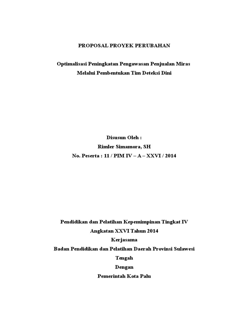 Berikut ini adalah daftar judul proyek perubahan inovasi dari peserta diklat kepemimpinan tingkat iii dan iv. Silahkan klik lihat untuk melihat detail judul proyek perubahan. Diklat kepemimpinan tingkat iii. Downloade contoh proyek perubahan pim iv pola baru tahun 2016 alhamdulillah kami panjatkan puja dan puji syukur kepada tuhan yang maha esa yang telah memberikan kesehatan keselamatan kepada kami sehingga kami dapat menyelesaikan proposal proyek perubahan dari awal sampai saat ini di pusat pendidikan dan pelatihan kepemimpinan tingkat iv angkatan 1 regional bukittinggi. Sekian dan terima kasih untuk info proyek perubahan diklat pim iv. Xx badan pendidikan dan pelatihan provinsi kepulauan bangka belitung 2014 2.