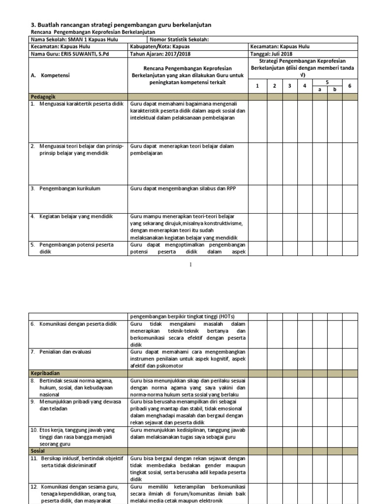 Rencana pengembangan keprofesian berkelanjutan yang akan dilakukan guru untuk peningkatan kompetensi terkait. Contoh rancangan strategi pengembangan guru berkelanjutan tambah komentar bab 1.