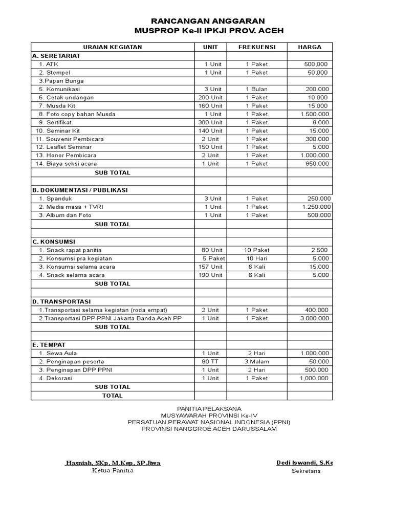 Contoh rencana anggaran biaya kegiatan seminar. Sehingga akan memudahkan anda untuk mendapatkan persetujuan dalam menyelenggarakan kegiatan yang diinginkan. Meningkatkan mutu pendidikan merupakan tugas dari setiap instansi yang terkait dalam dunia pendidikan termasuk masyarakat. Di postingan contoh rab rencana anggaran biaya. Kemah bakti tahun 2014. Contoh format rab format rencana anggaran biaya bidang ekonomi no uraian satuan volume harga satuan. Sekretariat penelitiperekayasaan orangbulan rp300000 b.
