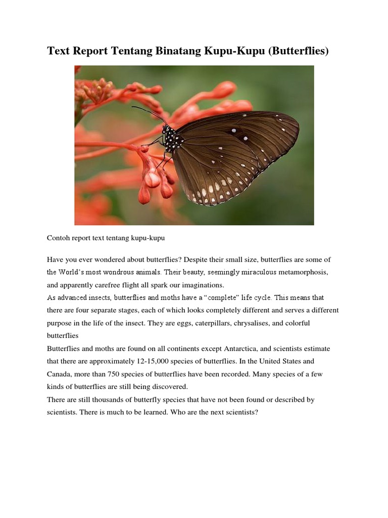 Contoh report text tentang binatang. Ada banyak sekali binatang yang bisa anda jadikan sebagai objek observasi lalu menulisnya menjadi sebuah laporan singkat. Sejalan dengan hal di atas contohtext juga akan memberikan beberapa text descriptive. Contoh text report tentang binatang berikut diberikan untuk menambah pengetahuan kita tentang jenis teks bahasa inggris yang bersifat ilmiah ini. Bagaimana biasanya report text ini disusun atau ditulis. Hewan i ni adalah hewan yang tampak aneh yang memiliki kaki tebal bagian tubuh dan punggung yang besar telinga menggantung besar ekor kecil sepasang mata kecil gading putih panjang dan lebih dari semua itu gajah memiliki hidung panjang yang disebut b elalai. Report text adalah teks yang mengambarkan benda atau barang secara apa adanya berdasarakan kajian ilmiah.
