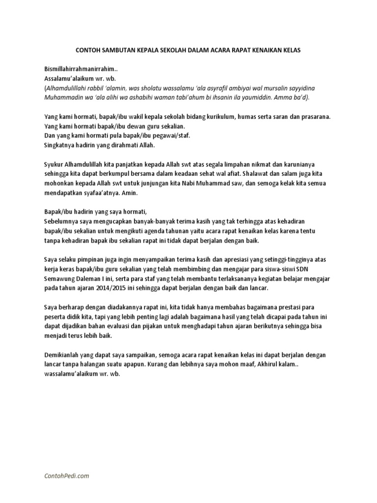 Demikianlah contoh pidato kepala sekolah dalam perpisahan kelas yang bisa saudaraku download secara gratis. Sambutan kepala sekolah kb tk alhamdulillahi robbil aalamin puji serta syukur kita panjatkan kehadirat allah swt atas limpahan rahmat karunia serta kasih sayang nya kepada kita semua.