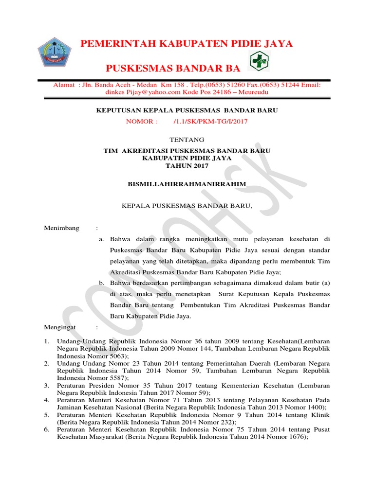 1 1 mendukung tandai dokumen ini sebagai bermanfaat 0 0 menolak tandai dokumen ini sebagai tidak bermanfaat tanamkan. Tentang tim akreditasi puskesmas wara barat kota palopo tahun 2015 dengan rahmat tuhan yang maha esa. Bersama kita bisa mempersiapkan tim akreditasi puskesmas sikui kecamatan teweh baru. Contoh sk tim akreditasi puskesmas. 3000 file sk pedoman panduan kak sop amp. 3000 file sk pedoman panduan kak sop telusur yang sudah tersusun tiap ep hubungi wa.