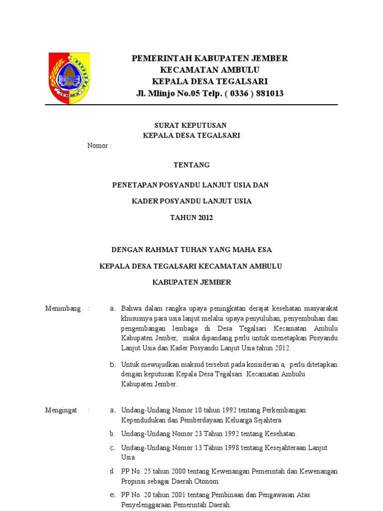 B ahwa berdasarkan pertimbangan huruf a dan b diatas untuk membentuk dan mengangkat kader posyandu perlu ditetapkan dengan keputusan kepala desa petir. Contoh format sk surat keputusan kepala desa. Kader posyandu desa lurah. 23 tahun 1985 nomor. Berikut anakciremai berikan contoh sk kepala desa untuk pengangkatan kader posyandu. Internet desa kominfo desa masuk target program internet gratis kominfo lagi hits berikut ini blog format administrasi desa akan merangkum kumpulan format format atau contoh contoh sk kades terbaru dan terlengkap beserta lampirannya dalam bentuk format doc word dan pdf.