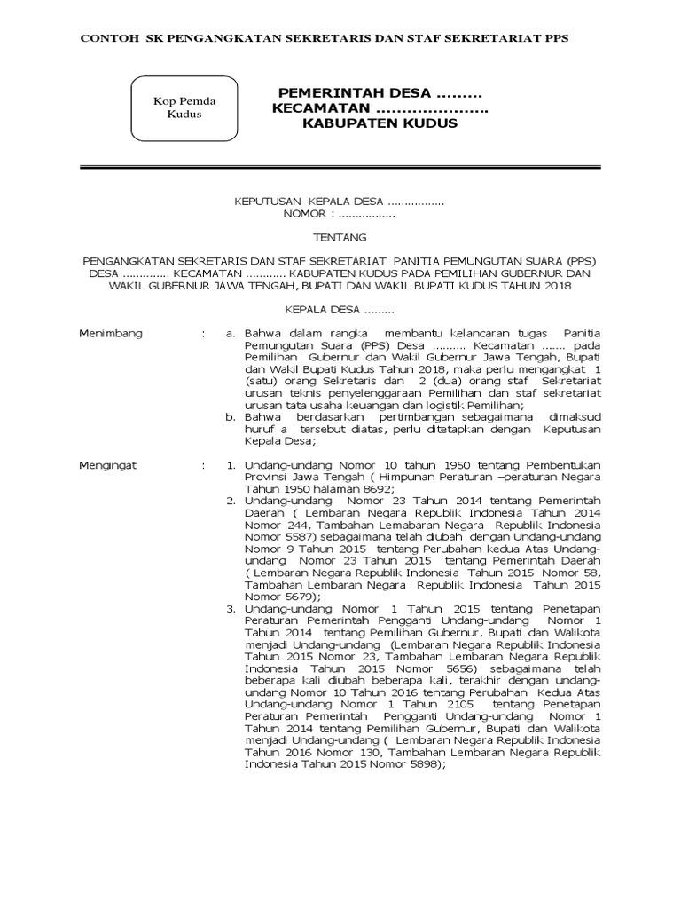 Contoh sk sekretariat pps. Contoh sk sekret pps. Surat keputusan kepala desa. Berita acara pps bisa di lihat dan unduh disini sk sekretariat pps bisa dilihat dan unduh disini sk ppdp bisa dilihat. 8005844014022017 tanggal 22 agustus 2017 perihal penetapan sekretaris dan staf sekretaris pps. Hasil tes wawancara calon anggota panitia pemungutan suara pps desa panjang. 21 mei 2015 22 mei 2015 ppkgarum.