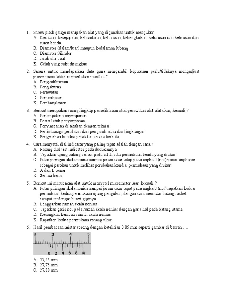 Contoh soal alat ukur. Tiap alat ukur memiliki fungsi masing masing yang spesifik. Contoh soal ini terdiri dari beberapa model soal tentang pengukuran yang umum seperti menentukan ketidakpastian pengukuran ketelitian alat ukur menentukan hasil pengukuran melaporkan hasil pengukuran cara membaca skala mikrometer skrup cara membaca skala jangka sorong mengukur panjang dan diameter suatu benda menggunakan mikrometer skrup. Contoh soal 1 perhatikan gambar mikrometer sekrup berikut ini. Hasil ukur skala utama skala nonius 350 mm 027 mm 377 mm. Setiap kunci momen memiliki momen maksimum maximum torque yang merupakan batas tertinggi kekencangan yang dapat diukur oleh kunci momen. Ada banyak macam macam alat ukur dalam fisika seperti mistar neraca termometer voltmeter speedometer dll.