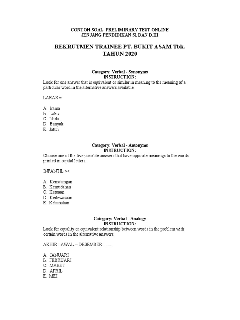 Contoh soal assessment test pdf. Tanpa panjang lebar lagi silakan anda download contoh soal tes assessment pada link di sinisilakan anda pelajari dengan sebaik baiknya contoh soal tes assessment tersebut yang sudah saya kemas dalam format pdfformat pdf merupakan salah satu format dokumen yang bisa anda buka dengan cukup mudah baik pada perangkat laptop komputer desktop maupun ponsel pintar anda. Keunikan dari tes ini adalah pada ketidakpastiannya. Tes kemampuan dan kuesioner kepribadian merupakan metode metode yang telah terbukti untuk mengevaluasi kualitas kualitas yang dibutuhkan dalam kesuksesan kerja seperti memecahkan masalah berkomunikasi secara efektif serta dalam menjadi inovatif dan kreatif. Karena faktor ini dapat memutarbalikan perhitungan logis potensi seseorang. Contoh soal assessment test yang berikutnya adalah tes pauli maupun tes kraepelin. Kedua jenis teks tersebut isinya adalah gugusan angka angka yang disusun dengan cara membujur dari atas ke bawah menggunakan bentuk lajur lajur pada sebuah kertas dengan ukuran cukup besar.