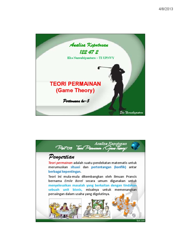 Tetapi ia pasti memperoleh keuntungan setidaknya sebesar min 8295 2 tanpa bergantung pada strategi yang dipilih pemain b. Teori ini dikembangkan untk menganalisa proses pengambilan keputusan yaitu strategi optimum dari situasi situasi persaingan yang berbeda beda dan melibatkan dua atau lebih kepentingan. Demikian penjelasan tentang struktur pasar oligopoli dan perilaku penjual yang diterangkan melalui game theory prisoners dilemma serta tercapainya nash equilibrium. Admin dari blog contoh soal terbaru 2020 juga mengumpulkan gambar gambar lainnya terkait contoh soal teori permainan riset operasi dibawah ini. Krugman paul and robin wells. Riset operasi penegrtian tahapan model tujuan contoh game theory riset operasi bisnis.
