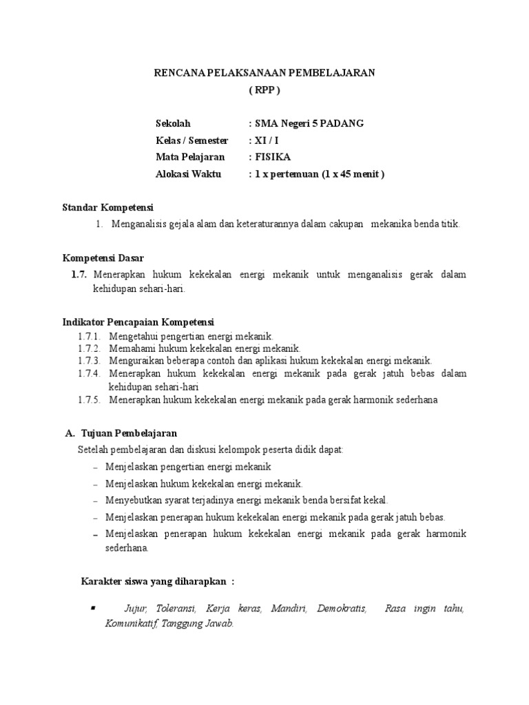 Pada kondisi tidak ada gaya non konservatif maka perubahan energi mekaniknya adalah nol. Em 1 em 2 ep 1 ek 1 ep 2 ek 2. Dengan kata lain jumlah energi potensial dan energi kinetik sistem sama di segala titik. Hukum kekekalan energi mekanik. Jika dalam suatu sistem berlaku hukum kekekalan energi mekanik maka energi mekanik sistem akan selalu tetap. Sehingga besar energi mekanik awal dan energi mekanik pada kondisi akhir besarnya sama konstan.