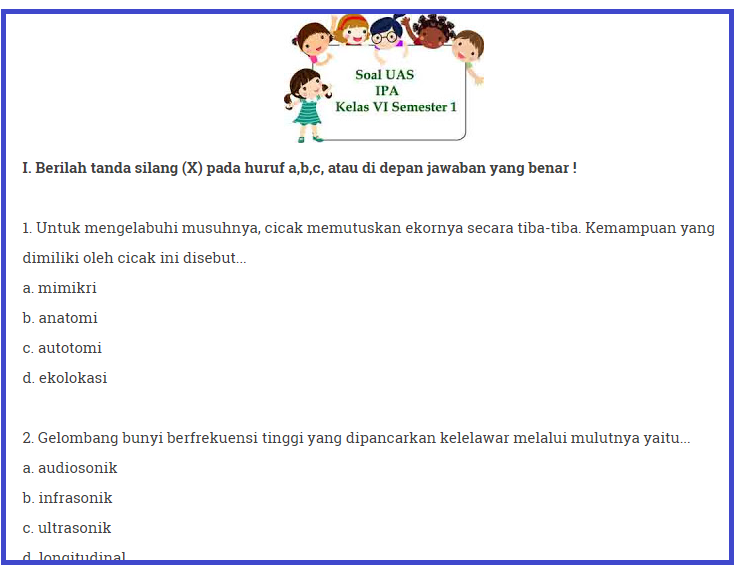 Hai siapa nih di antara kamu yang suka memerhatikan lingkungan sekitar. Baca juga ulasan lainnya. Soal ips kelas 2. Soal uts ipa ini sudah dilengkapi dengan kunci jawaban. Berikut ini merupakan beberapa contoh soal kelas 6 tentang matematika untuk membantu anak anak dalam belajar matematika. Contoh soal ujian sekolah berstandar nasional usbn ipa untuk kelas 6 sdmi terbaru yang telah dilengkapi dengan kunci jawaban tahun ajaran 2072018.