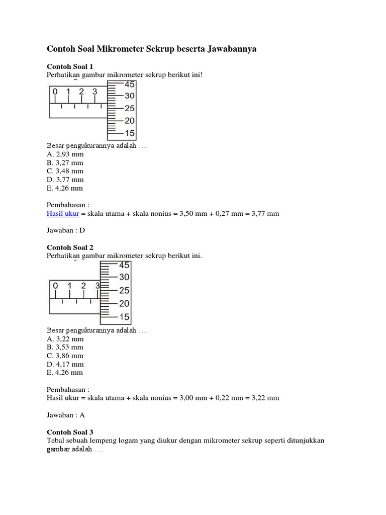 Contoh soal jangka sorong dan jawabannya smp. Sehingga para sahabat bisa mengerti dan memahami soal jangka sorong yang kami posting untuk anda semua disini. Saat ini sudah banyak beredar jangka sorong dengan ketelitian yang lebih tinggi sampai 0 05 mm dan 0 0l mm. January 6 2017 admin 22 comments. 1 perhatikan gambar di bawah ini. Soal jangka sorong ini adalah salah satu hal yang wajib kamu tahu dimana admin blog soal kunci jawaban menyampaikan soal jangka sorong kepada teman teman semua yang saat ini mencari soal jangka sorong dengan ini maka kamu akan tahu selengkapnya pembahasan soal jangka sorong tersebut. Contoh file soal uts lengkap kelas 1 6 sdmi semua mata pelajaran 20162017 berikut ini adalah kumpulan dari berbagi sumber tentang contoh soal jangka sorong dan mikrometer sekrup dan jawabannya yang bisa gunakan untuk bank soaldownloadsd dan diunduh secara gratis dengan menekan tombol download biru.