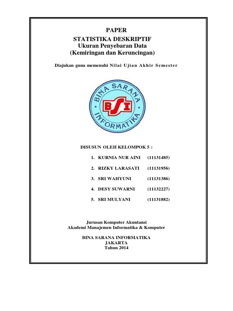 Contoh untung menghitung 4 buah momen sekitar rata rata untk data dalam daftar distribusi frekuensi sbb. Materi dalam makalah ini juga dilengkapi dengan contoh soal dan latihan soal untuk menguji pemahaman dari materi yang telah dipelajari. Sebagai contoh jika diperoleh nilai sk 0807 adalah artinya merupakan nilai negatif akan tetapi tidak jauh dari nilai berarti data cenderung berdistribusi normal atau hampir normal. Momen kemiringan dan keruncingan distribusi normal distribusi t distribusi f distribusi binomial distribusi poisson uji normalitas dan homogenitas uji f dan t hipotesis dan anova makalah sebagai salah satu tugas dalam mata kuliah analisis statistik oleh. Sampai jumpa pada postingan selanjutnya. Dalam malakah ini akan dijelaskan mengenai pengertian jenis dan kurva dari suatu kemiringan dan keruncingan distribusi data tunggal maupun kelompok.