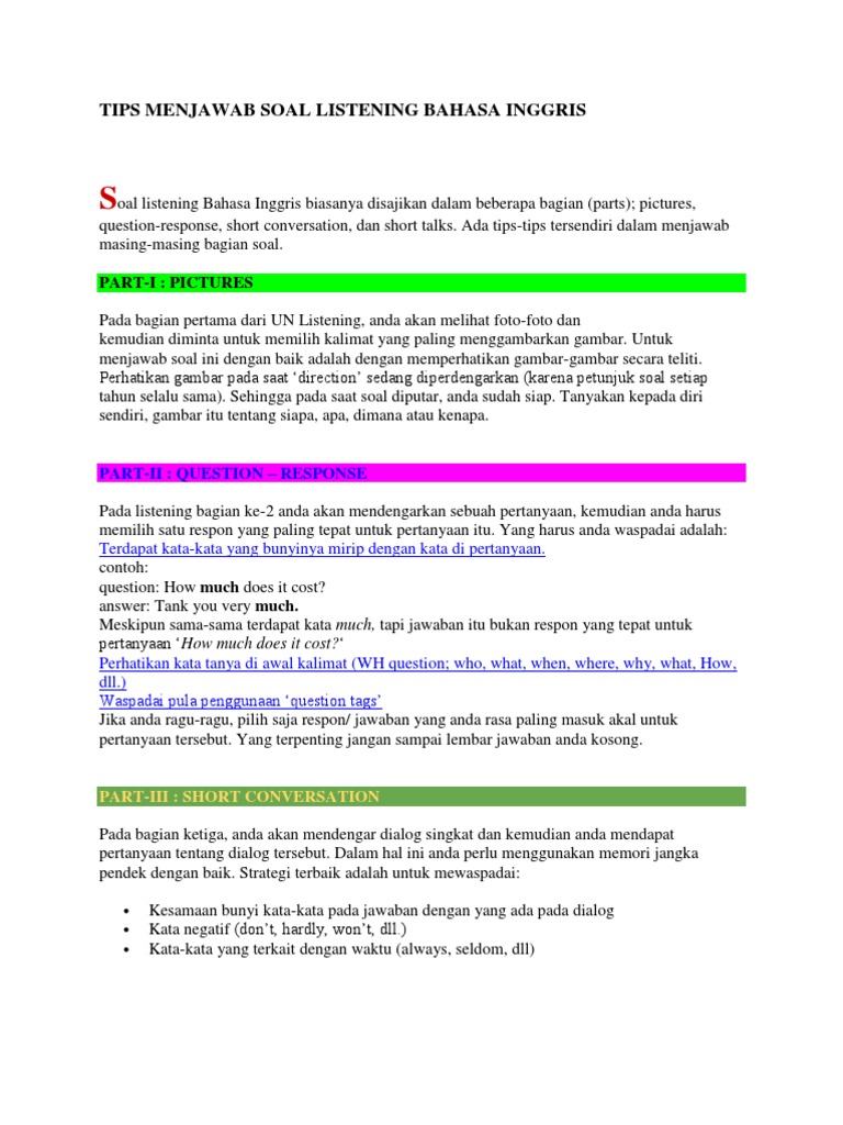 Contoh soal listening bahasa inggris. Untuk lebih jelasnya berikut pembahasannya. Pengertian dan contoh percakapannya dalam bahasa inggris. Dalam bentuk soal listening yang terdapat pada soal nomor 1 sampai dengan 15 terdiri dari empat bagian utama yaitu part i. Posting pada questions reading ditag contoh soal dan pembahasannya soal toefl contoh soal reading dan pembahasannya contoh soal tes reading pos pos terbaru negotiation of meaning. Question responses pertanyaan jawaban part iii. Sadar atau tidak kalau ada bunyi alat pendengar kita akan menangkap atau mendengar bunyi bunyi tersebut.