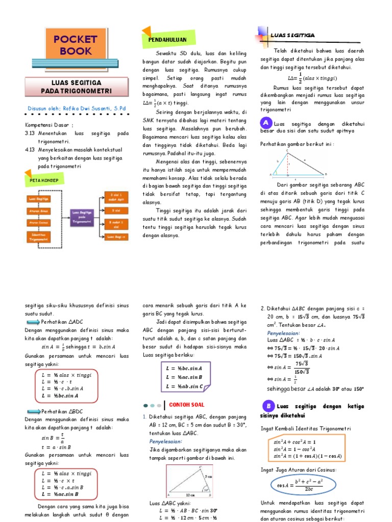 Contoh soal luas segitiga trigonometri. Contoh soal aturan sinus cosinus luas segitiga trigonometri beserta kunci jawaban dan pembahasannya pada dasarnya segitiga terdiri dari 3 sisi dan 3 sudut dengan jumlah ketiga sudut yaitu 180. Rumus lain dari luas segitiga abc adalah jika diketahui panjang ketiga sisinya yakni a b dan c. Trigonometri pada luas segitiga 4699 views. Contoh soal trigonometri yang sering keluar di un. Aturan turunan dan contoh soal 2428 views. 1 segitiga samasisi abc dengan panjang sisi 12 cm diperlihatkan gambar berikut.