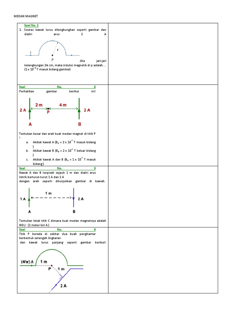 Contoh soal medan magnet. A kuat medan magnet di titik p b arah medan magnet di titik p. Untuk soal essay dan uraian tentang gaya magnet belum bisa kami bagikan. 1 seutas kawat dialiri arus listrik i 2 a seperti gambar berikut. Adalah suatu medan yang dibentuk dengan menggerakan muatan listrik arus listrik yang menyebabkan munculnya gaya di muatan listrik yang bergerak lainnyaputaran mekanika kuantum dari satu partikel membentuk medan magnet dan putaran itu dipengaruhi oleh dirinya sendiri seperti arus listrik. Demikianlah artikel ulangan harian 30 soal materi magnet medan magnet dan induksi elektromagnetik beserta kunci jawabannya semoga dapat membantu sobat dalam belajar dan dapat mengasah kemampuan sobat jika sobat ingin melihat soal soal lainnya dengan materi yang berbeda silakan sobat klik contoh soal ipa di menu atas sekian saja dari saya terimakasih sudah berkunjung dan sampai bertemu di. Oke squad sekarang kamu sudah paham kan cara menghitung besar medan magnet pada kawat lurus dan kawat melingkar.