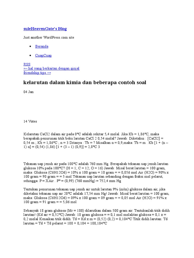 Berikut ini adalah contoh soal dan bahasan dalam penurunan titik beku. Contoh soal sifat koligatif larutan kenaikan titik didih.
