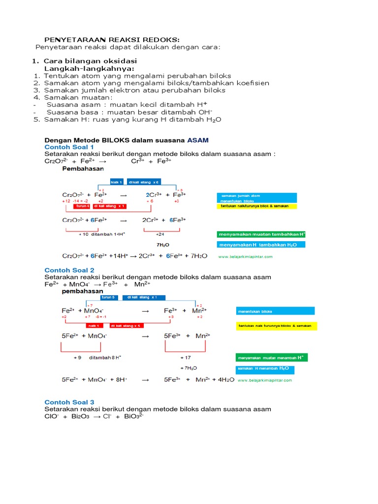 Samakan jumlah atom o dengan menambahkan h 2 o di yang kurang o sebanyak kekurangannya suasana asam atau menambahkan h 2 o di yang lebih o sebanyak kelebihannya suasana basa. Cara bilangan oksidasi biloks.