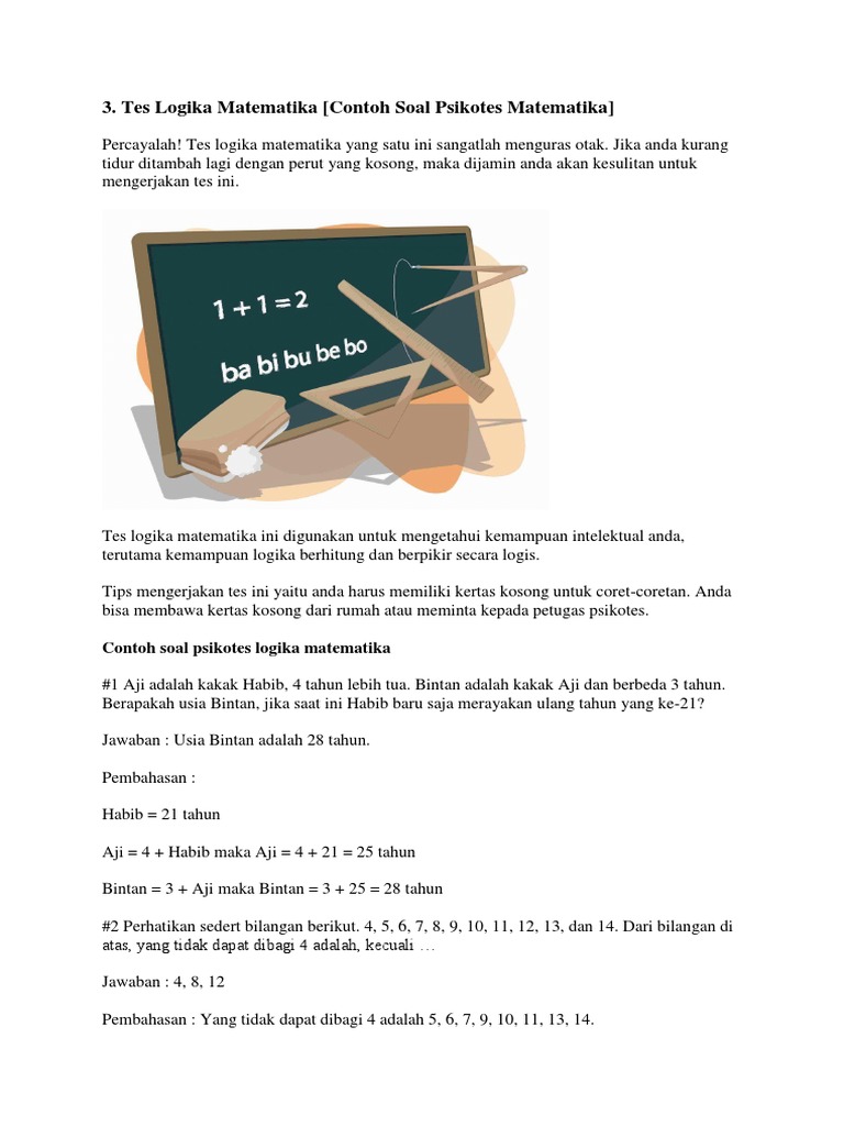 Contoh Soal Psikotes Matematika Dan Jawabannya Pdf Kumpulan