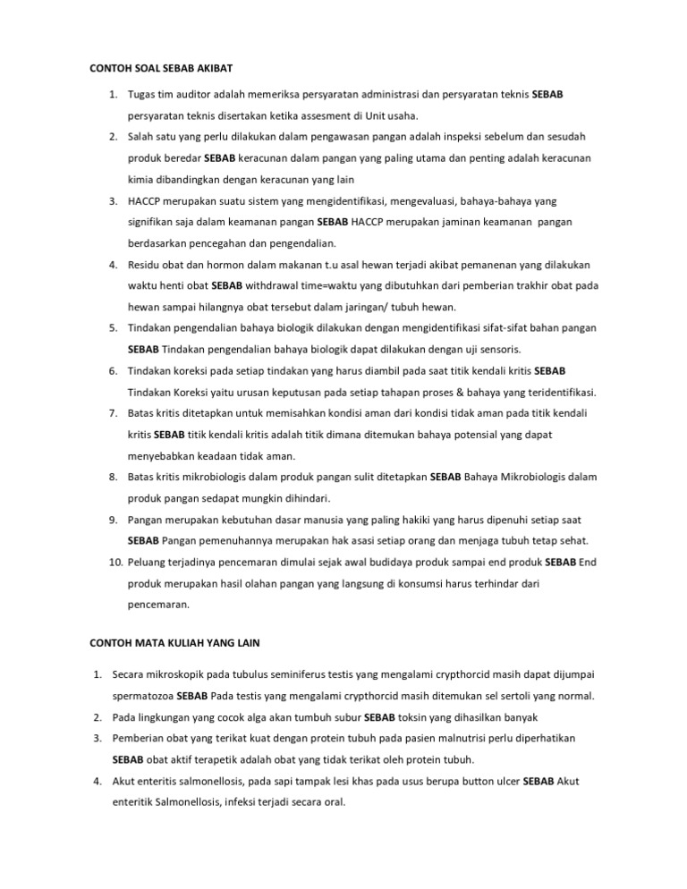 Contoh soal sebab akibat. Nah ternyata selain terdiri atas banyak mata pelajaran tes masuk perguruan tinggi ini juga terdiri punya 3 model soal sbmptn berbeda lhosupaya bisa semakin lancar ketika hari h nanti kamu harus sering berlatih mengerjakan contoh soal. She came late to her office this morning because she got a little accident. Contoh paragraf sebab akibat tentang narkoba. People around the world has known bicycle since a long time ago. Utang saya tidak dibayar untuk listrik sehingga pln untuk sementara memutus aliran listrik. The rain is very hard so i stop driving my car and park it at a safe place.