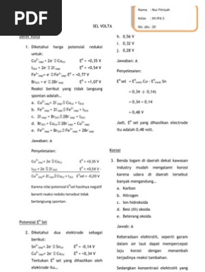 Contoh soal sel volta. Sel volta tersusun atas 2 setengah sel yang dihubungkan dengan jembatan garam. 1 diberikan data beberapa potensial standar sebagai berikut. I ag e ag e 080 v ii mg 2 2e mg e 237 v. 30 contoh soal dan pembahasanya hello sobat. Silahkan kalian simak penjelasan lengkapnya dibawah ini. Contoh soal sel volta no16.