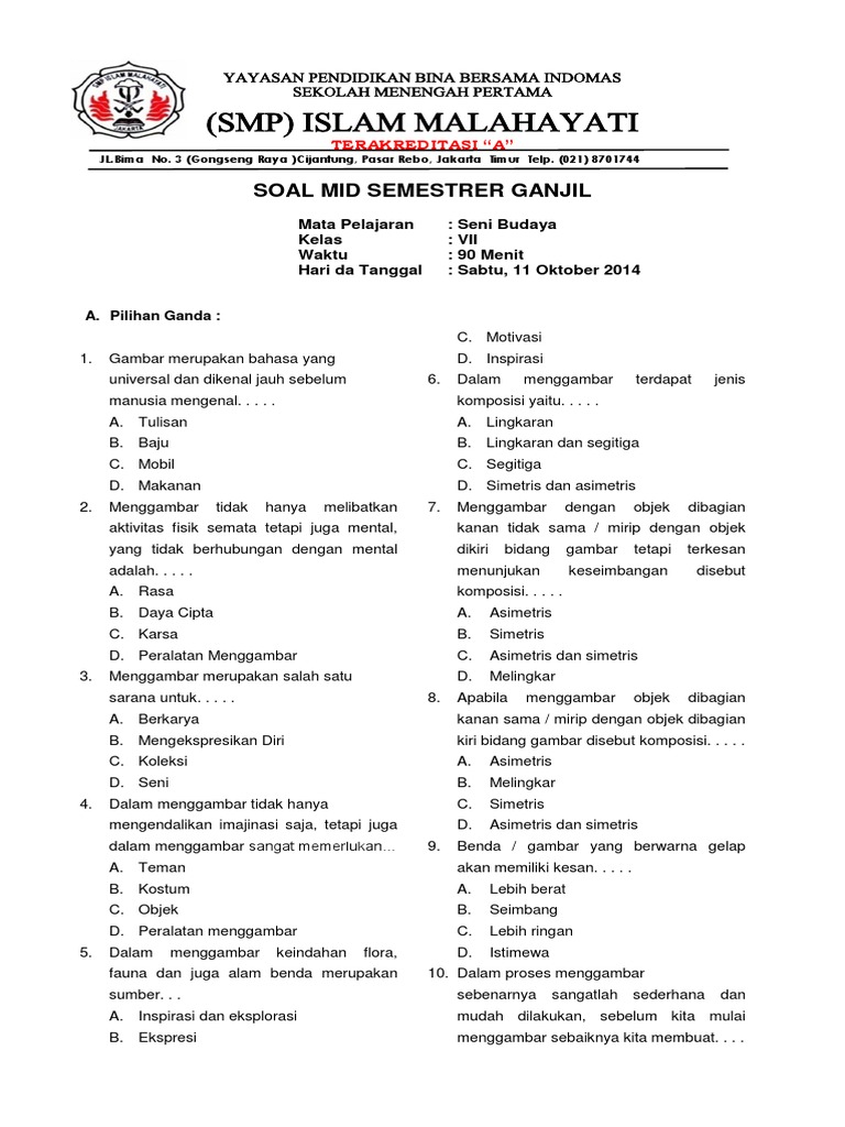 Contoh soal seni budaya. Aktivitas menggambar yang digunakan model sebagai objek gambar disebut a. Artikel ini tentang soal seni budaya kelas 12 xii tahun 2020 2021 tingkat smamasmk semester 1 dan 2 atau sebagai mata pelajaran seni budaya lengkap pg dan essay. Contoh soal skb guru seni budaya 2018 adalah merupakan postingan yang akan saya bagikan kali ini. Untuk seni musik belum bisa kami masukkan dalam soal seni budaya kelas 10 ini. Pastinya contoh soal skb guru seni budaya 2018 ini akan berguna bagi anda yang ingin mengikuti seleksi cpns 2018 pada jabatanformasi guru seni budaya. Contoh soal seni budaya kelas 8 smpmts semester 1 dan semester 2 lengkap dengan kunci jawabannya 2019.