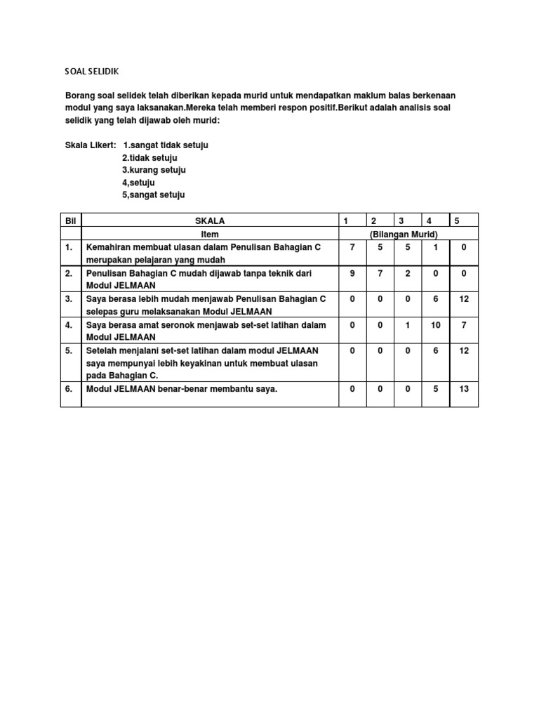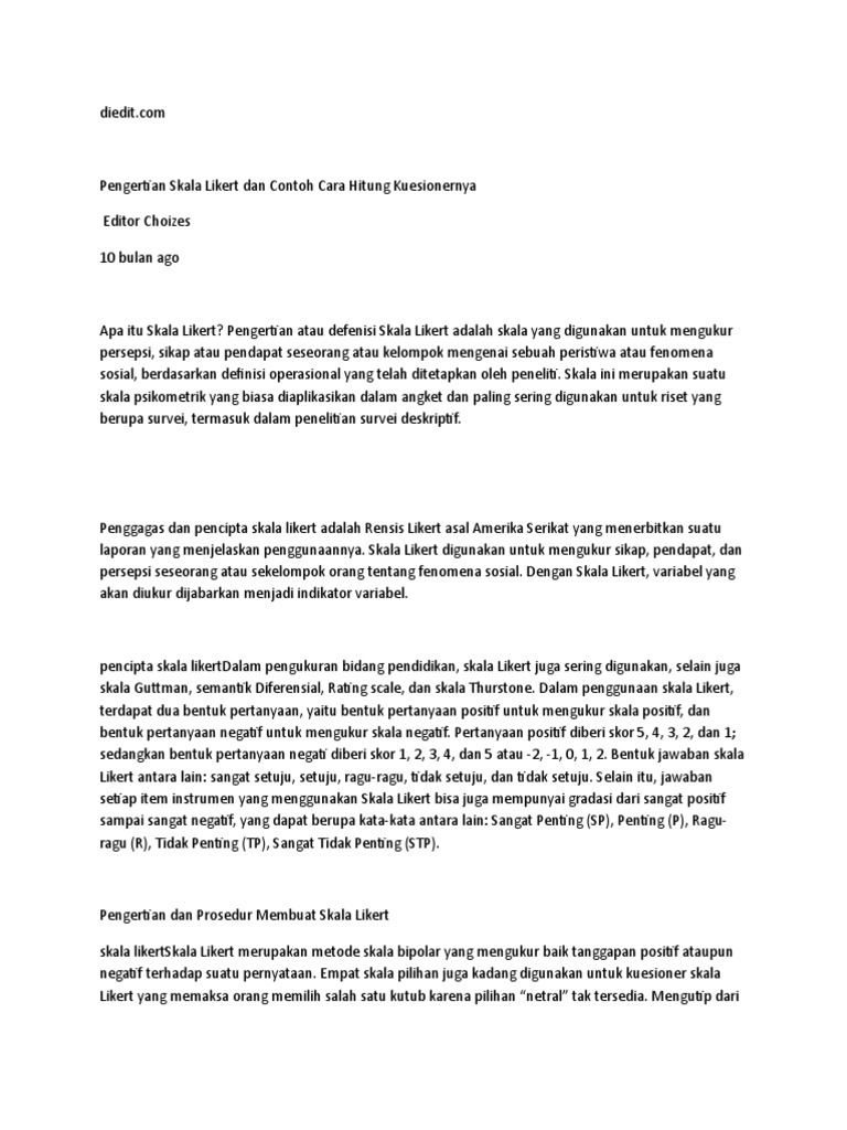 Contoh soal skala likert. Contoh kedua jam 0000 bukan berarti waktunya kosong atau tidak ada nilainya karena jam 0000 sendiri masih menunjukkan waktu dimana jam 0000 sama dengan jam 12 malam. Academiaedu is a platform for academics to share research papers. Jadi semakin banyak ukuran dalam skala likert itu mungkin membuatkan responden berasa kurang selesa seterusnya mungkin mengakibatkan kajian kita tidak memberi gambaran dalam populasi sebenar. Skala rasio adalah skala pengukuran yang ditujukan pada hasil pengukuran yang bisa dibedakan diurutkan memiliki jarak tertentu dan bisa dibandingkan. Skala kumulatifapabila responden mengiyakan pernyataan yang berbobot yang lebih berat ia akan mengiyakan pernyataan yang. Pengertian atau definisi skala likert adalah skala yang digunakan untuk mengukur persepsi sikap atau pendapat seseorang atau kelompok mengenai sebuah peristiwa atau fenomena sosial berdasarkan definisi operasional yang telah ditetapkan oleh peneliti.