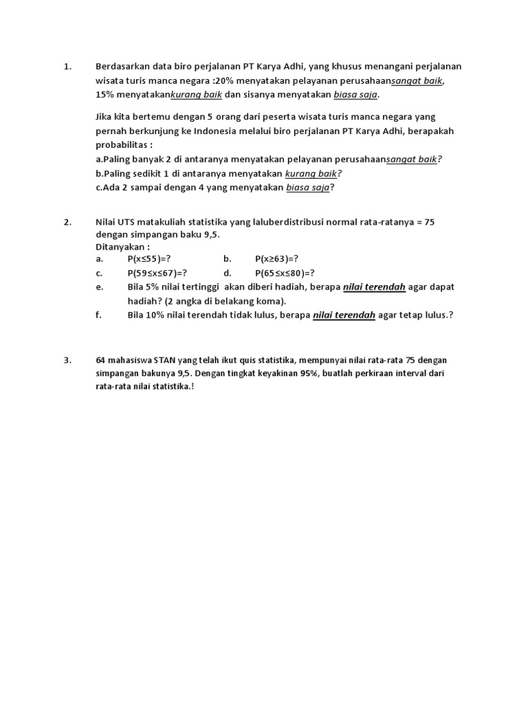 Kumpulan Contoh Soal Contoh Soal Statistika Kuliah Semester 2