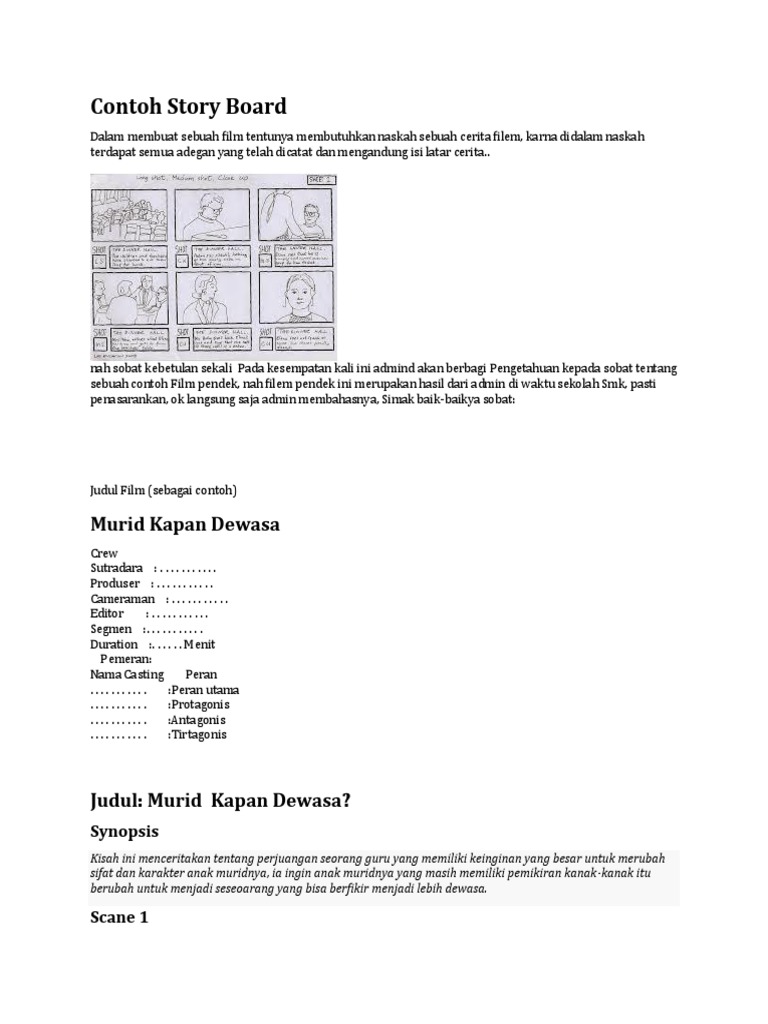 Film pendek bisa terdiri dari belasan bahkan puluhan adegan apalagi film panjang. Dari kisah di atas terlihat bahwa film pendek bukan film sembarangan. Format penulisan naskah film pendek. Pada kesempatann kali ini ibi akan membahas tentang storytelling. Agar tak bingung ketika disunting setiap gambar yang diambil diberikan identitas sesuai nomor scene dan shot yang ditulis di naskah. Contoh kerangka storyboard film pendek diposting oleh unknown di 0600.