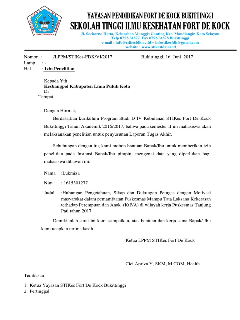 Contoh surat izin penelitian ke kesbangpol. Menyampaikan hasil penelitian paling lama 1 satu bulan setelah waktu berlakunya surat izin berakhir kepada. Memberitahukan ke instansi yang diperlukandituju dan aparat wilayah yang lokasinya dijadikan tempat penelitian. Indonesia harus memperoleh surat izin penelitian sip dari menteri negara riset dan teknologi. Kantornya terletak di komplek kepatihan danurejan yogyakarta 55213 telp0274562811. Setelah tiba di lokasi dan sebelum melaksanakan penelitian terlebih dahulu harus melaporkan diri ke instansi setempat dengan menunjukkan surat ini. Buku pedoman prosedur izin penelitian bagi perguruan tinggi.