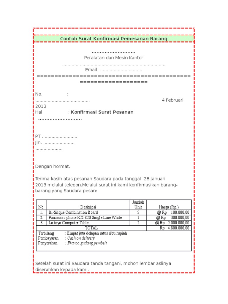 Contoh Surat Konfirmasi Pesanan Contoh Surat Konfirmasi