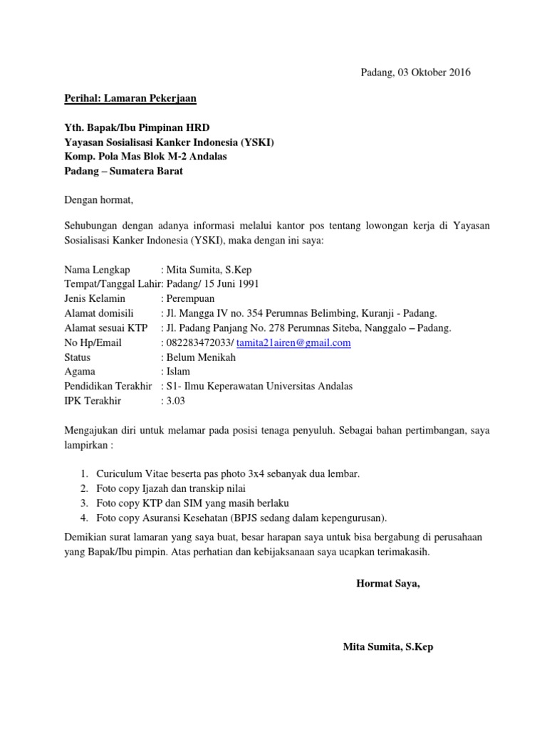 Surat Lamaran Kerja Yang Baik Dan Contohnya 2019 Ilmu Bahasa