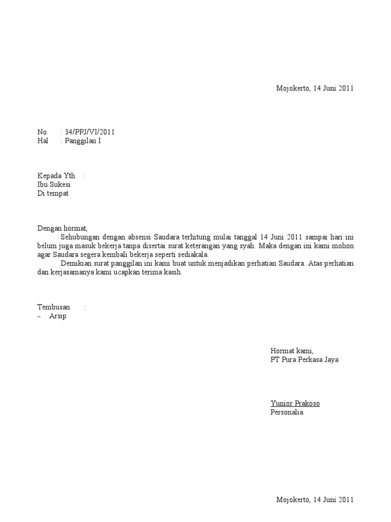 Contoh surat panggilan berbicara mengenai surat panggilan tentu akan banyak orang yang langsung berpikir mengenai kesalahan ataupun pelanggaran. Sebelum saya bagikan contoh surat tersebut beberapa waktu yang lalu saya juga sudah membagikan contoh surat penolakan lamaran kerja jika dibutuhkan bisa langsung. Panggilan kerja kepada yth. Ya surat panggilan ini biasanya ditujukan kepada orang orang yang melanggar peraturan. Contoh surat lamaran kerja di perusahaan seringkali dicari oleh para pencari kerja yang ingin mengajukan lamaran pekerjaan di perusahaan perusahaan yang ada di indonesia. Surat panggilan kerja dapat berisi tentang lanjutan proses seleksi seperti tes tertulis tes wawancara dan dapat juga berisi sebagai surat panggilan untuk memulai kerja.
