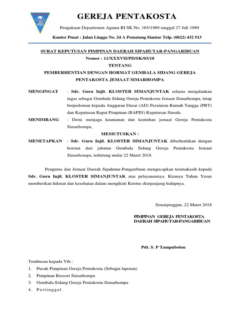 Yang menurut surat keterangan. Bagi anda yang menepati posisi personalia di suatu perusahaan surat pemberhentian kerja bukan termasuk surat yang asing. Berdasarkan poin 1 dan 2 dipandang perlu menerbitkan surat keputusan pemberhentian dengan hormat sebagai guru tetap yayasan di lingkungan yayasan sabilirrasyad telagawar yang ditetapkan dalam sebuah keputusan ketua yayasan sabilirrasyad telagawaru. Contents1 mengenal 5 jenis surat pemberhentian kerja 2 contoh surat pemberhentian kerja. Jika perusahaan kelebihan karyawan maka bisa memberikan surat pemberhentian kerja dengan hormat. Pemberhentian pemberhentian dengan hormat permintaan sendiri telah mencapai usia pensiun meninggal dunia adany penyederhanaan organisasi perusahaan tidak cakap jasmani atau rohani pemberhentian dengan tidak hormat melakukan pelanggaran atau kejahatan terlibat dalam perbuatan.