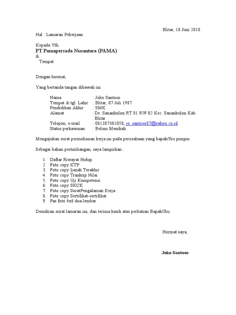 Surat Lamaran Pekerjaan Ppt Download