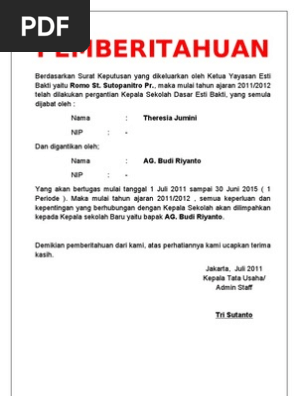 Contoh surat pergantian pimpinan. 3 contoh surat pemberitahuan dalam bahasa inggris beserta artinya lengkap surat merupakan suatu alat atau media komunikasi meskipun saat ini surat sudah jarang sekali digunakan sebagai sebuah alat. 021 2358 6349. Biasanya terima jabatan ini terjadi karena adanya pergantian jabatan dari satu pihak kepada pihak yang lain. Namun untuk urusan komunikasi perusahaan maupun berbagai lembaga maupun instansi pemerintah penggunaan surat masih merupakan sesuatu hal yang wajib untuk dilakoni. Kemungkinan jenis surat permohonan yang akan kamu buat atau kamu urus berbeda tapi tidak usah bingung kamu cukup menyesuaikannya dengan contoh yang kami berikan di atas. Itulah beberapa contoh surat permohonan untuk berbagai kepentingan yang dapat kamu jadikan rujukan dalam membuat surat permohonan.