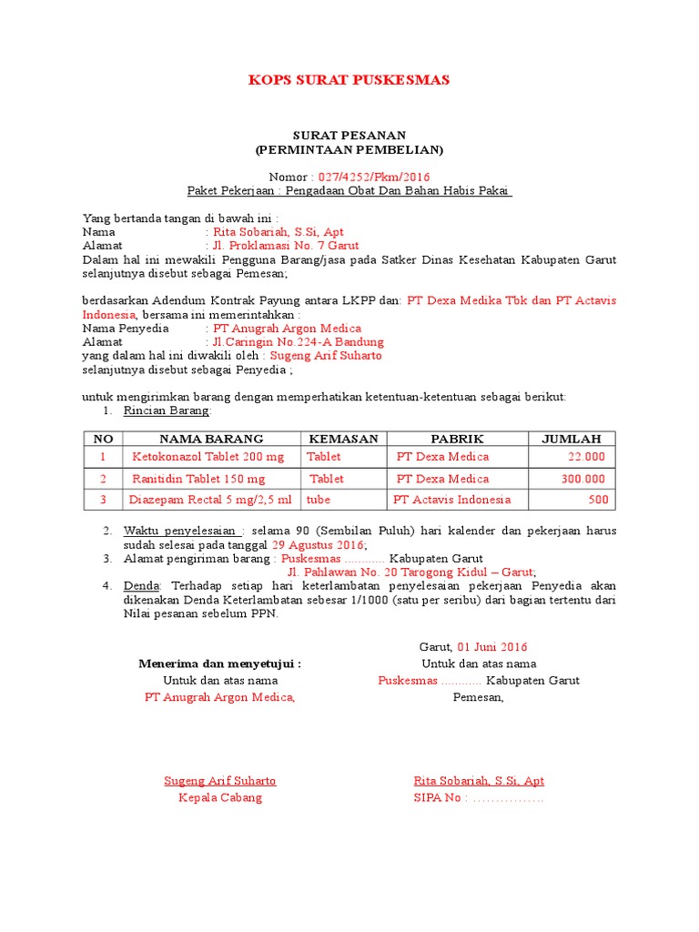 Borma mini market jalan rereng kumelati no. Surat pesanan digunakan untuk pengadaan barangjasa melalui e purchasing atau pembelian melalui toko daring. Pasal 55ayat 1e perpres 4 tahun 2015 jadi kalo ppk sudah menyetujui proses epurchasing dari pejabat pengadaan dengan penyedia katalog maka terjadilah perikatankontrak yang berupa surat pesanan walau surat pesanan kontraknya tidak ditandatangani basah. Dalam e purchasing produk barangjasa pemerintah terdapat fitur untuk pembuatan paket unduh download format surat pesanansurat perjanjian unggah upload hasil scan kontrak yang sudah ditandatangani sampai dengan. Peraturan kepala lkpp nomor 17 tahun 2012 tentang e purchasing dengan ini disampaikan hal hal sebagai berikut. Pengadaan barangjasa pemerintah dapat dilakukan secara elektronik dengan cara e tendering atau e purchasing.