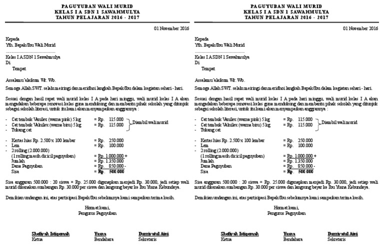 Contoh surat udangan rapat untuk wali muridsiswa adalah surat undangan yang titunjukkan kepada wali murid untuk suatu kepentingan semisal membahas mengenai agenda belajar untuk tahun ajaran baru. Surat undangan dapat berupa surat resmi maupun tidak resmi. Contoh surat udangan rapat untuk wali muridsiswa adalah surat undangan yang titunjukkan kepada wali murid untuk suatu kepentingan semisal membahas mengenai agenda belajar untuk tahun ajaran baru. Contoh surat undangan rapat waliorang tua murid tk surat undangan adalah sebuah surat yang dikirim kepada seseorang agar orang yang dimaksud datang pada waktu tempat acara yang telah ditentukan. Keduanya memiliki karakteristik yang berbeda dan digunakan untuk keperluan yang tidak sama. Aamiin melalui surat ini kami mengundang bapakibu orang tuawali murid kelas ix sembilan smpn satu atap sungai karang untuk berkenan hadir pada.