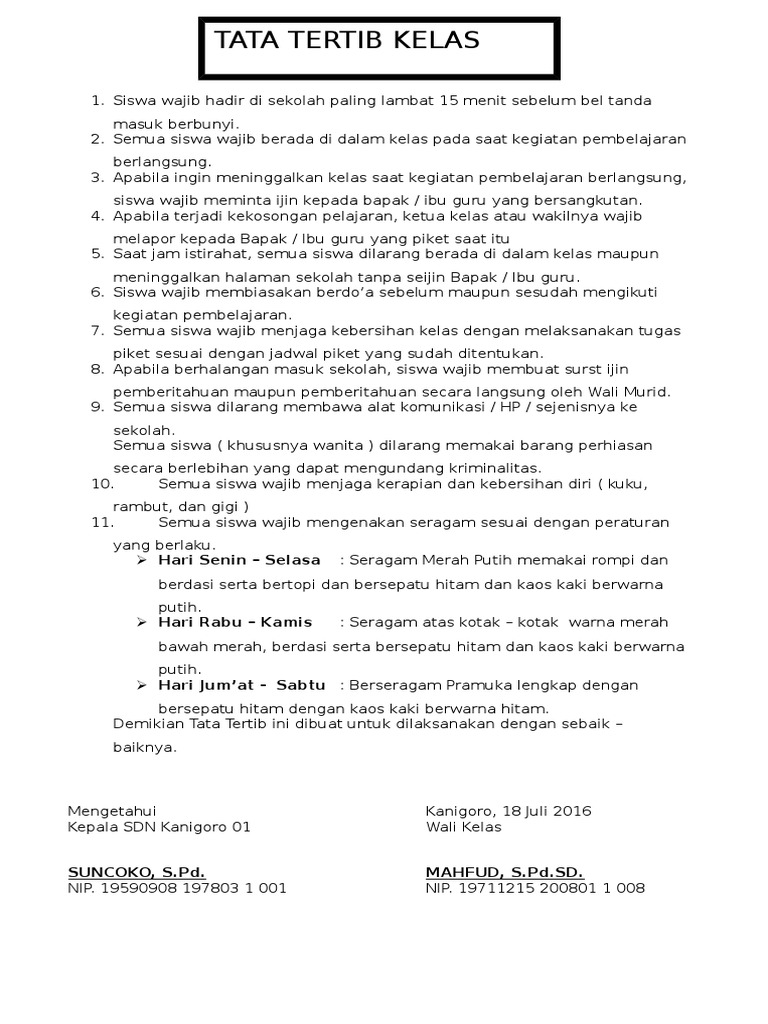 Berbicara tentang sekolah setiap sekolah memiliki kebijakan dan aturan main tersendiri. Tata tertib merupakan hal yang penting dalam tatanan kehidupan. Tata tertib kelas pemerintah kabupaten blora. Tata tertib hampir terdapat pada setiap sendi kehidupan.