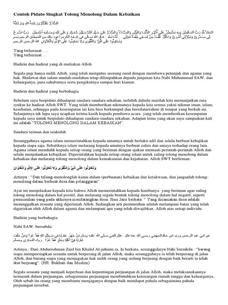 Contoh tolong menolong dalam kebaikan. Ayat alquran tentang tolong menolong sebagai makhluk sosial manusia yang tidak bisa memenuhi kebutuhan hidupnya sendiri selalu membutuhkan bantuan orang lain. Demikianlah contoh contoh tolong menolong dalam kebaikan. Sikap hidup saling tolong menolong dapat mewujudkan terciptanya kedamaian bagi umat manusia. Sebagai contoh sikap saling menolong dalam kebaikan dan ketakwaan rasulullah shallallahu alaihi wa sallam bersabda. Orang lain yang secara kebetulan melihat perbuatan tolong menolong yang kita lakukan pada orang lain akan mendapat energi positif untuk ikut melakukan perbuatan baik tersebut dan akan terus menularkan pada orang lain. Hukum tolong menolong dalam islam beserta anjurannya bahwa sebagai umat muslim membantu saudara kita dalam kebaikan merupakan sebuah kewajiban yang tidak mengenal ruang dan waktu untuk mengatahui lebih dalam maka simak selengkapnya dalam artikel berikut.