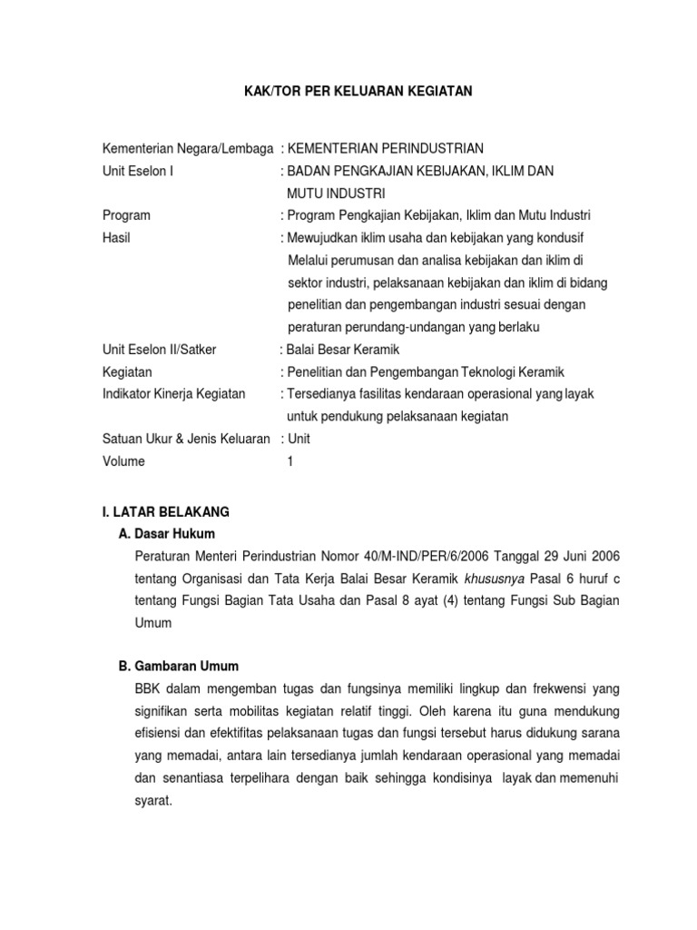 Berikut ini adalah contoh kak pengadaan alat peraga pendidikan welding simulator yang terdiri dari latar belakang mengapa diperlukan belanja modal pengadaan welding simulator dasar hukum tujuan dan maksud belanja pengadaan barang tersebut hingga analisa kebutuhannya. Contoh kerangka acuan kerja kak lengkap untuk semua jenis pekerjaan by nidaur rahmah kerangka acuan kerja kak atau dalam bahasa inggrisnya disebut term of reference tor adalah dokumen perencanaan kegiatan yang memuat semua penjelasanketerangan mengenai latar belakang apa mengapa siapa kapan di mana bagaimana dan berapa perkiraan biayanya suatu kegiatan. Terpenuhinya pengadaan barang inventaris. Kerangka acuan kerja atau juga disebut term of reference tor pengadaan barang adalah suatu dokumen yang menginformasikan gambaran latar belakang tujuan ruang lingkup dan struktur sebuah proyek pengadaan barang yang telah disusun oleh skpddinas terkait. Untuk memudahkan anda dalam penyusunan kak kami telah membuatkan formatdraft baku susunan kerangka acuan kegiatan tersebut berikut. Sekolah usaha perikanan menengah kota agung nama ppk.