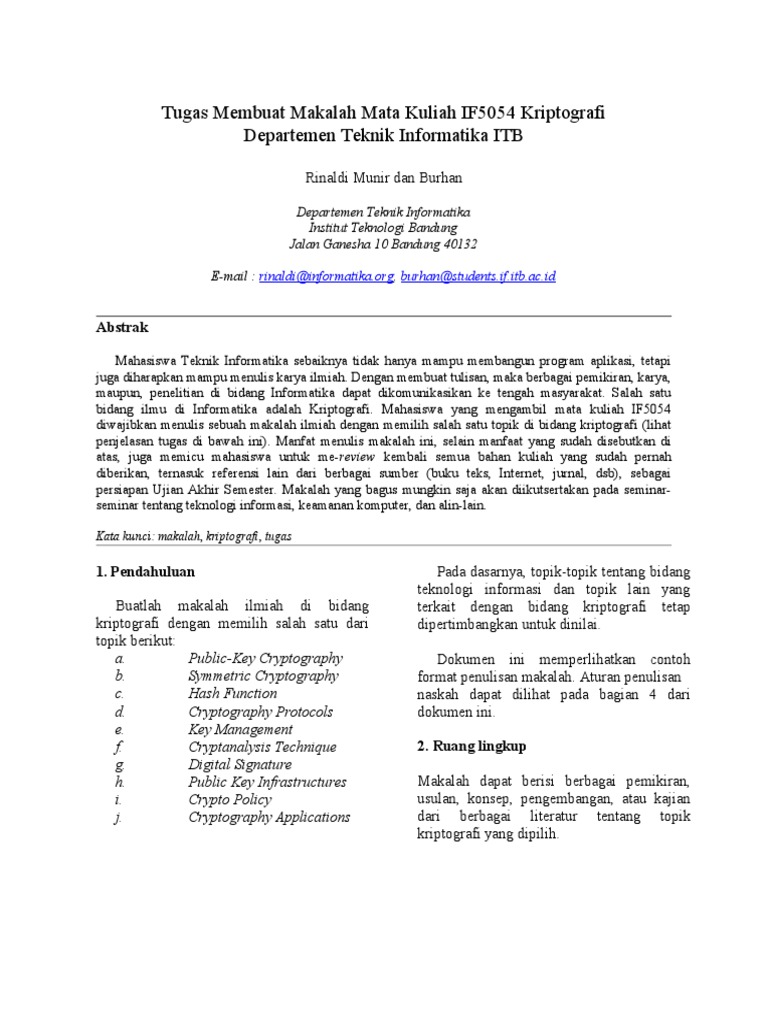 Jadi misal tugas akhir atau riset yang kita lakukan ada berhalaman halaman kita cukup meringkasnya menjadi 6 halaman saja namun. Membuat paper sendiri umumnya untuk memenuhi tugas dari dosen untuk mengetahui tingkat pengetahuan mahasiswa. Tugas ini dibuat sebagai rincian atas hasil yang telah didapatkan dari kegiatan penelitian atau aktivitas sejenis. Contoh paper kuliah di dalam perkuliahan sering kali mahasiswa diberi tugas untuk membuat paper. Paper merupakan suatu tugas yang diberikan dalam bentuk menyerupai karya tulis ilmiah yang ditulis secara lengkap dan terperinci. Artikel tentang contoh paper kuliah akan menjawab pertanyaan anda.